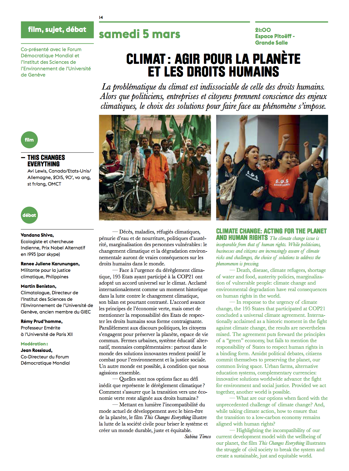I was invited at the International Film Festival and Forum on Human Rights in Geneva, Switzerland in February 2016 as a guest panelist for the debate/forum that happened after the screening of “This is Not A Film.” Here is the poster and some pages from the programme guide: