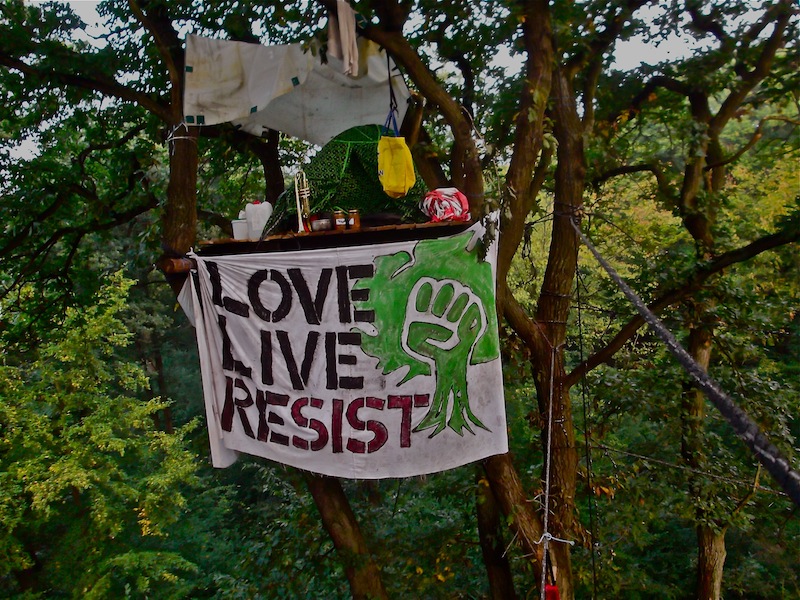 Activists like Lou and Strobo who have built treehouses in the forest, which were destroyed by the police and which the activists have since started re-building, will not give up the fight.