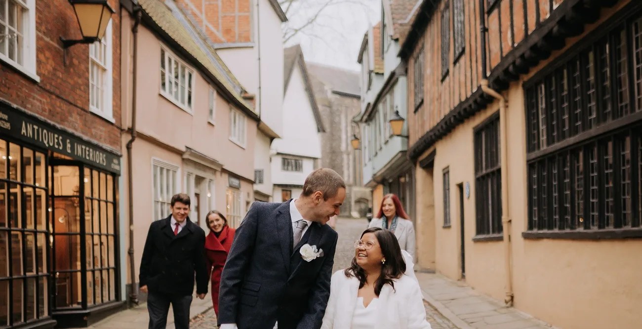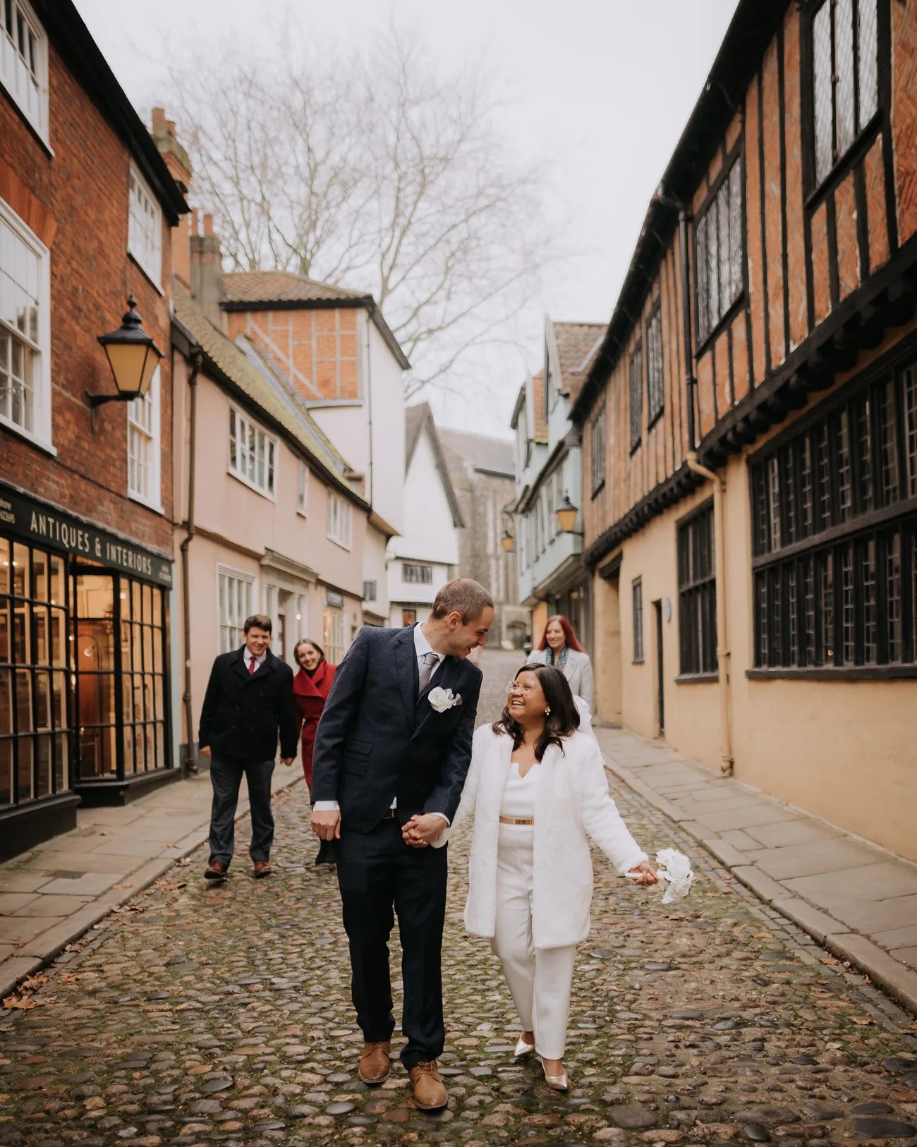 When I first came to Norwich, I fell in love with the city. I loved in particular the historical street of Elm Hill, where Stardust was filmed. After our ceremony and lunch, we had some photos at Elm Hill, and they are my absolute favourite!